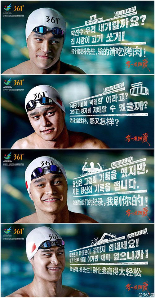 仁川亚运会孙杨输了,361度海报尴尬了! 2014-9-25